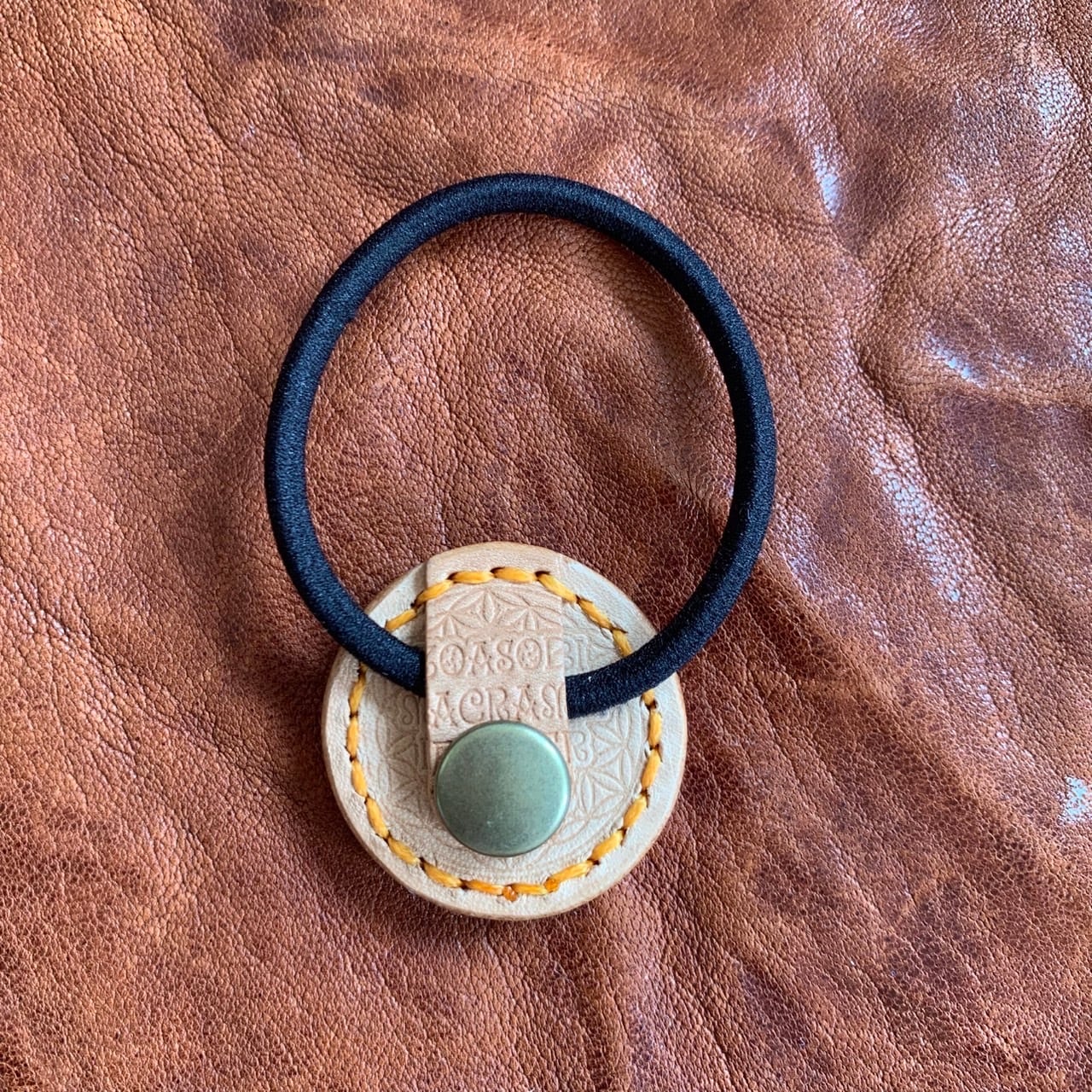 前回制作したヘアゴムよりも、やや厚手のヌメ革を使用する事で丈夫さがよりアップしました。
