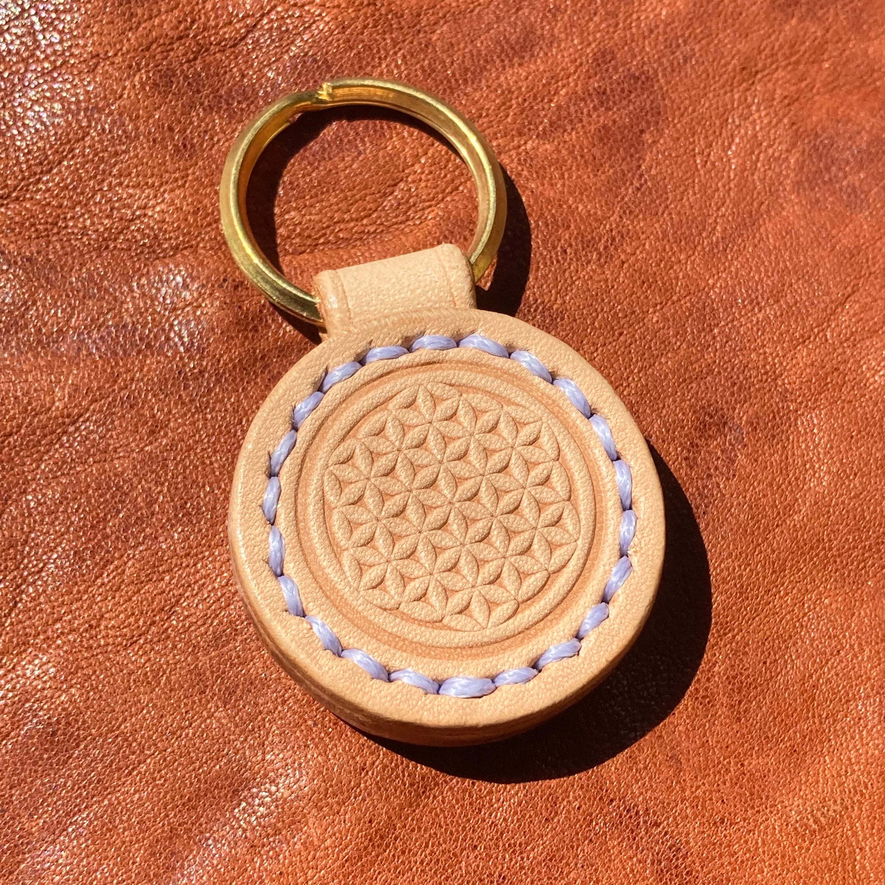 ヌメ革にFlower of lifeと糸遊美の刻印を施しています。