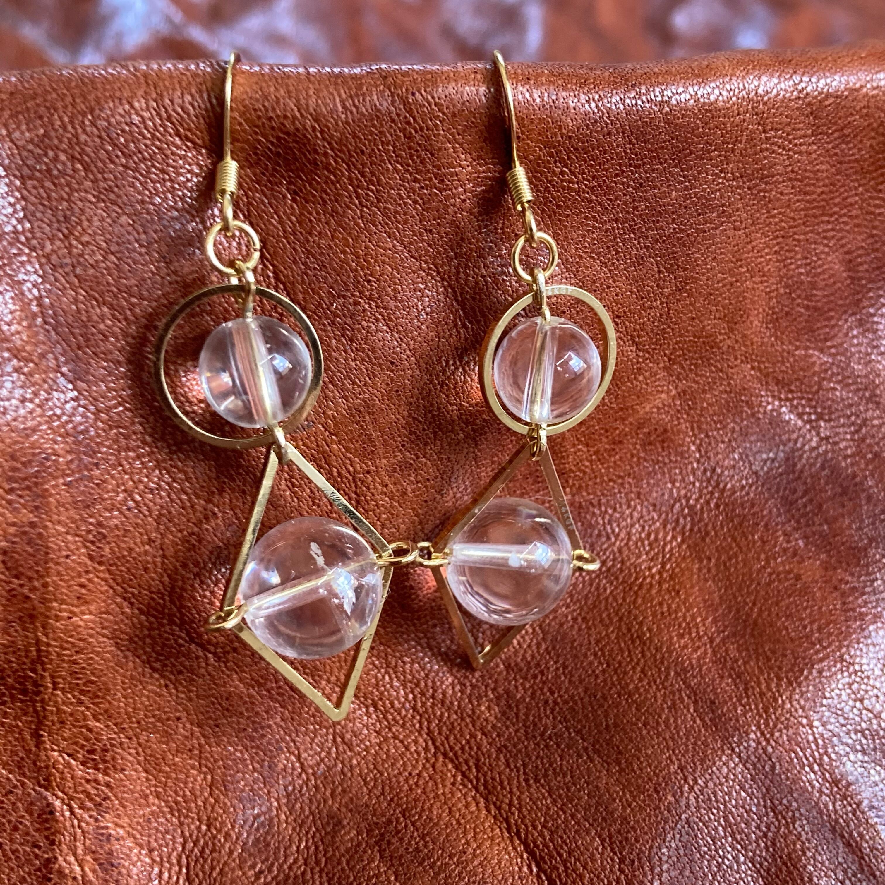 14kgfのパーツとヒマラヤ水晶を組み合わせた煌びやかなピアスです。