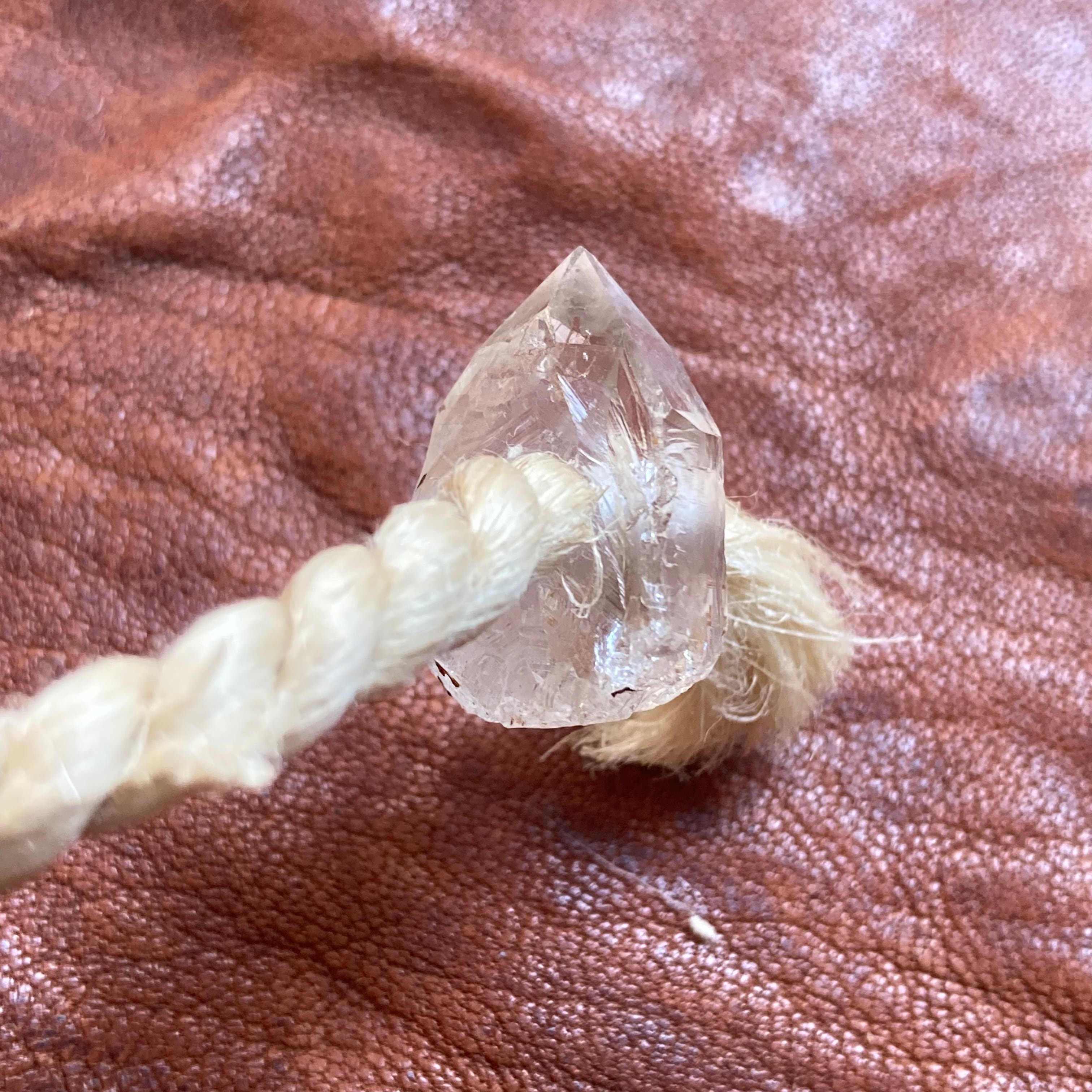 ※腕飾りを脱着する際は精麻が擦れないように水晶の先端から優しく通して下さい。