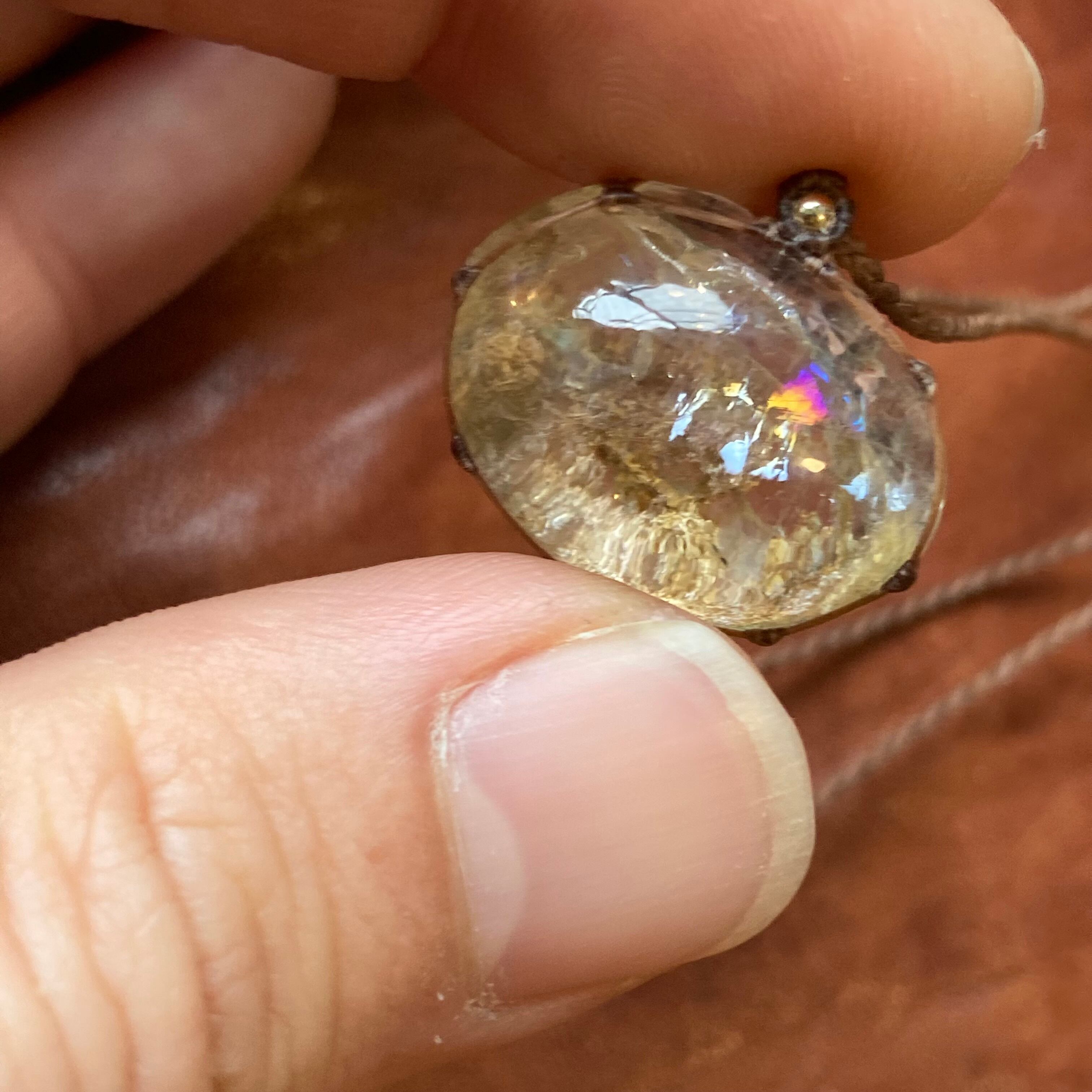 クラックから虹がキラリと光るガーデンクォーツ。