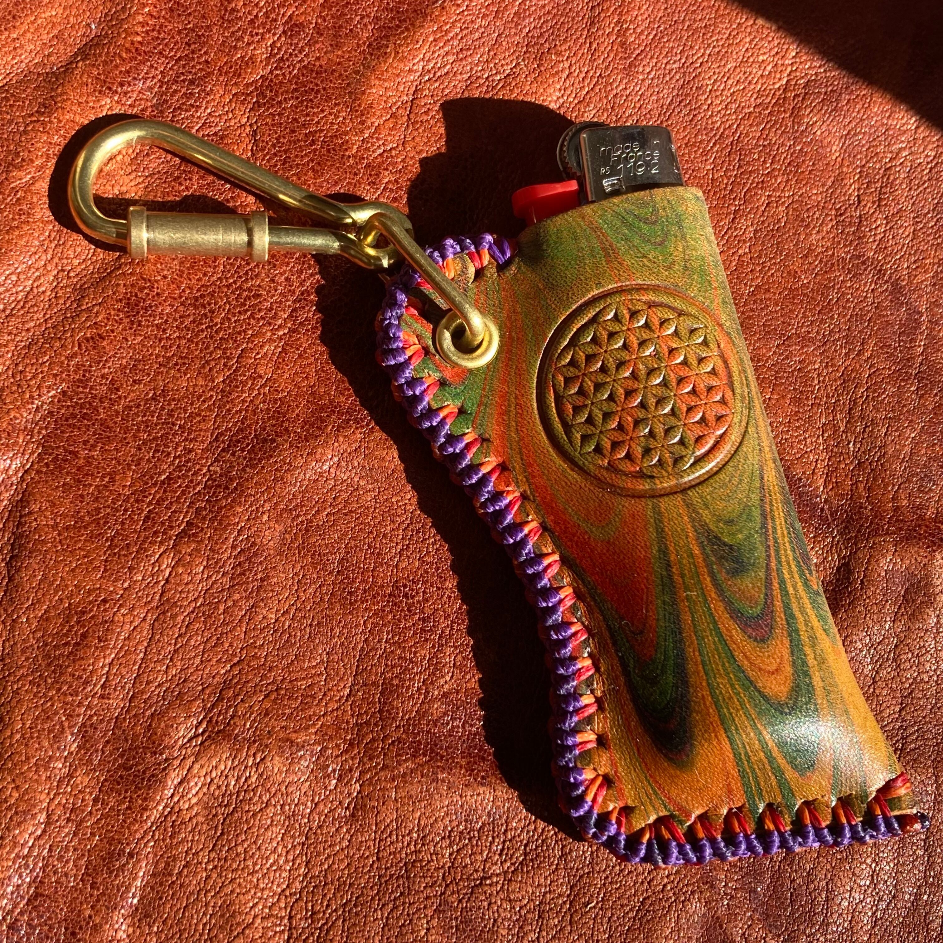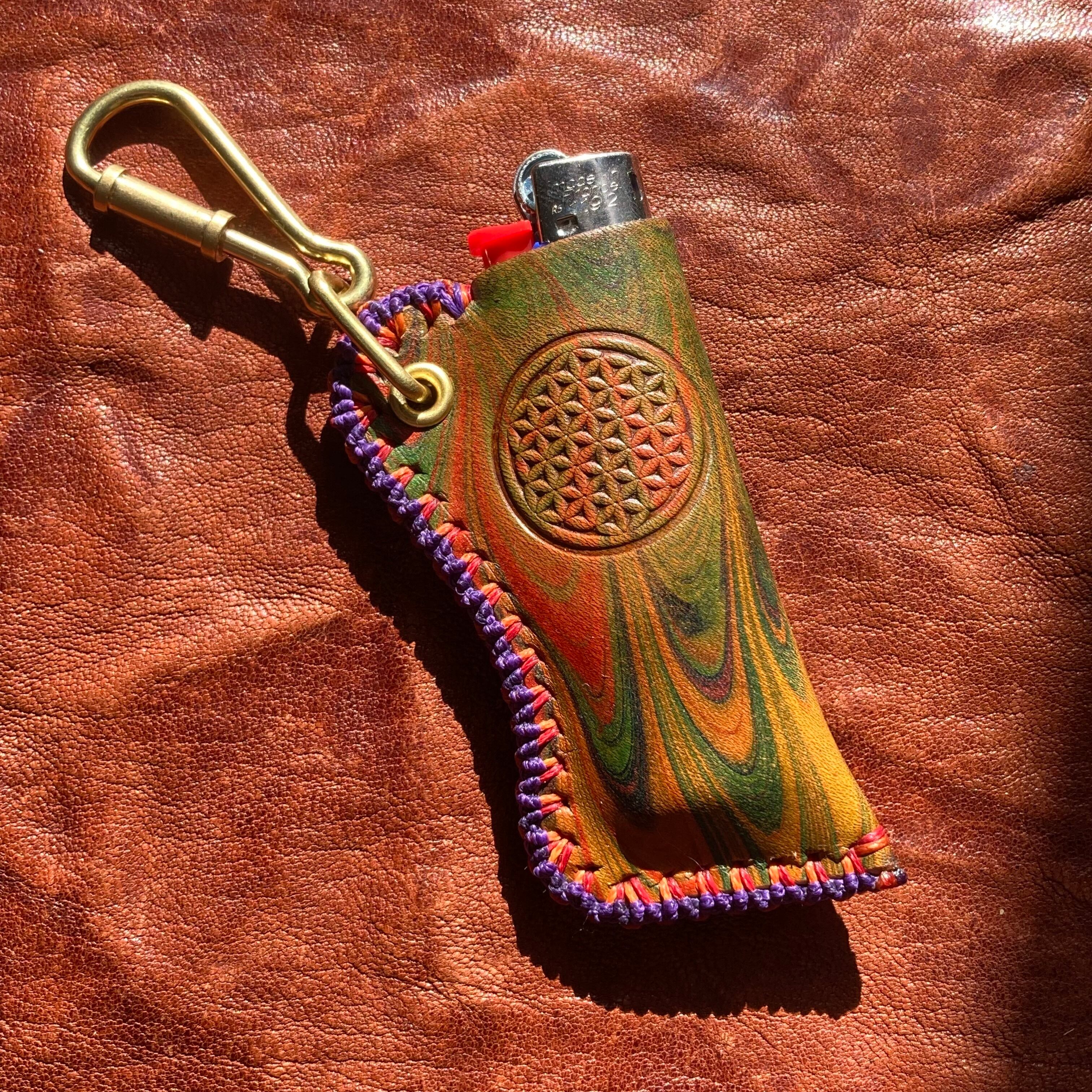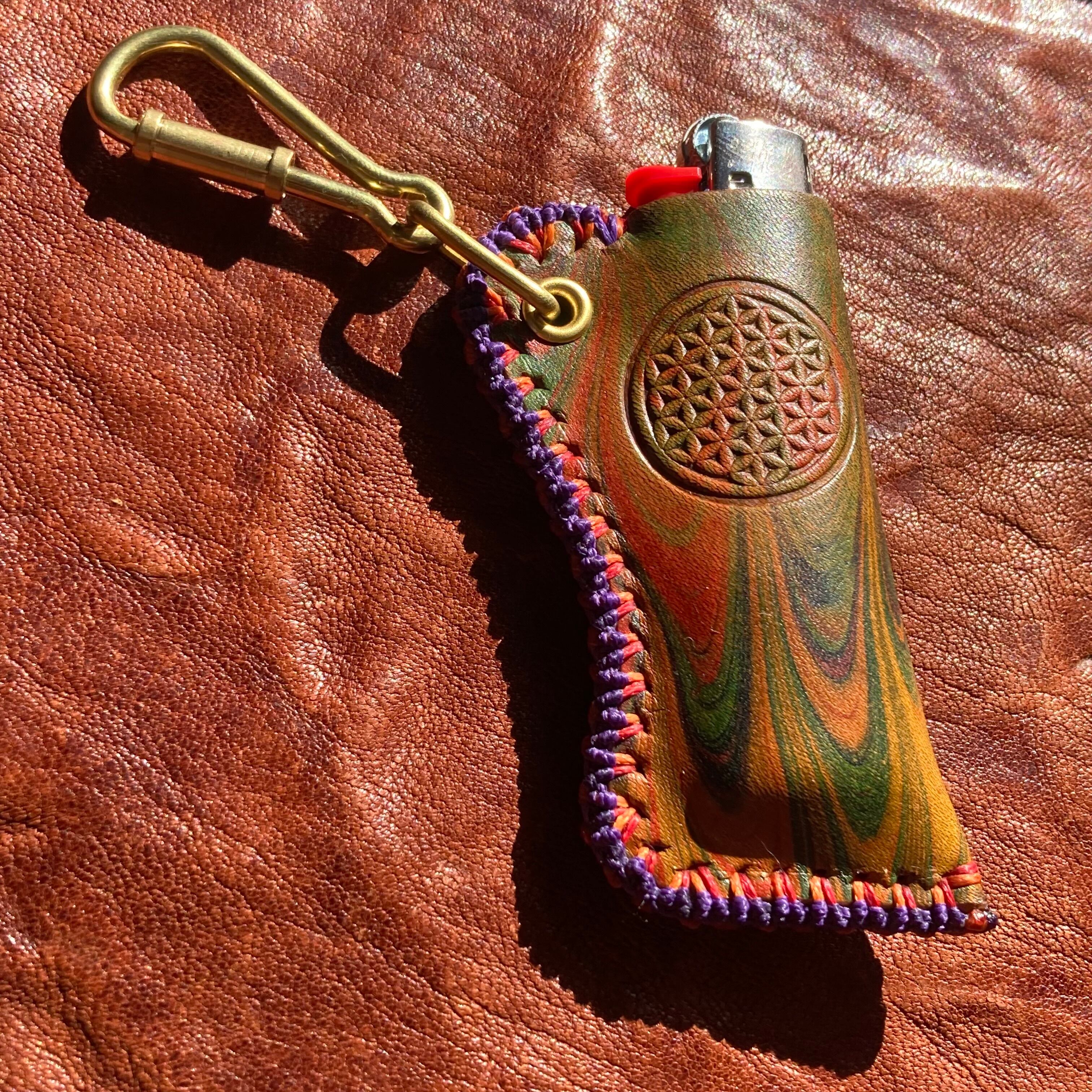 -Flower of life- マーブリングレザーBicライターカバー