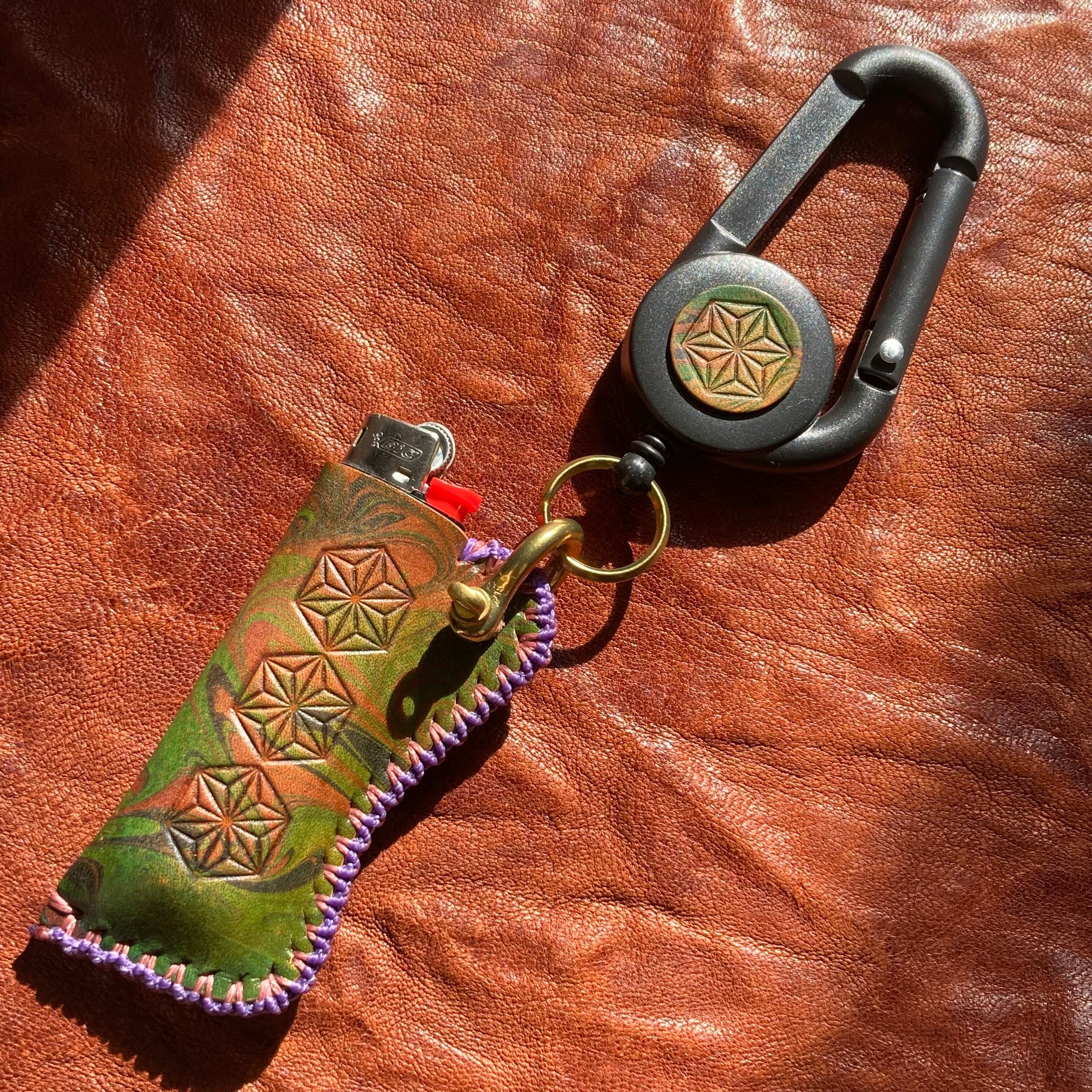 -麻の葉- マーブリングレザーBicライターカバー