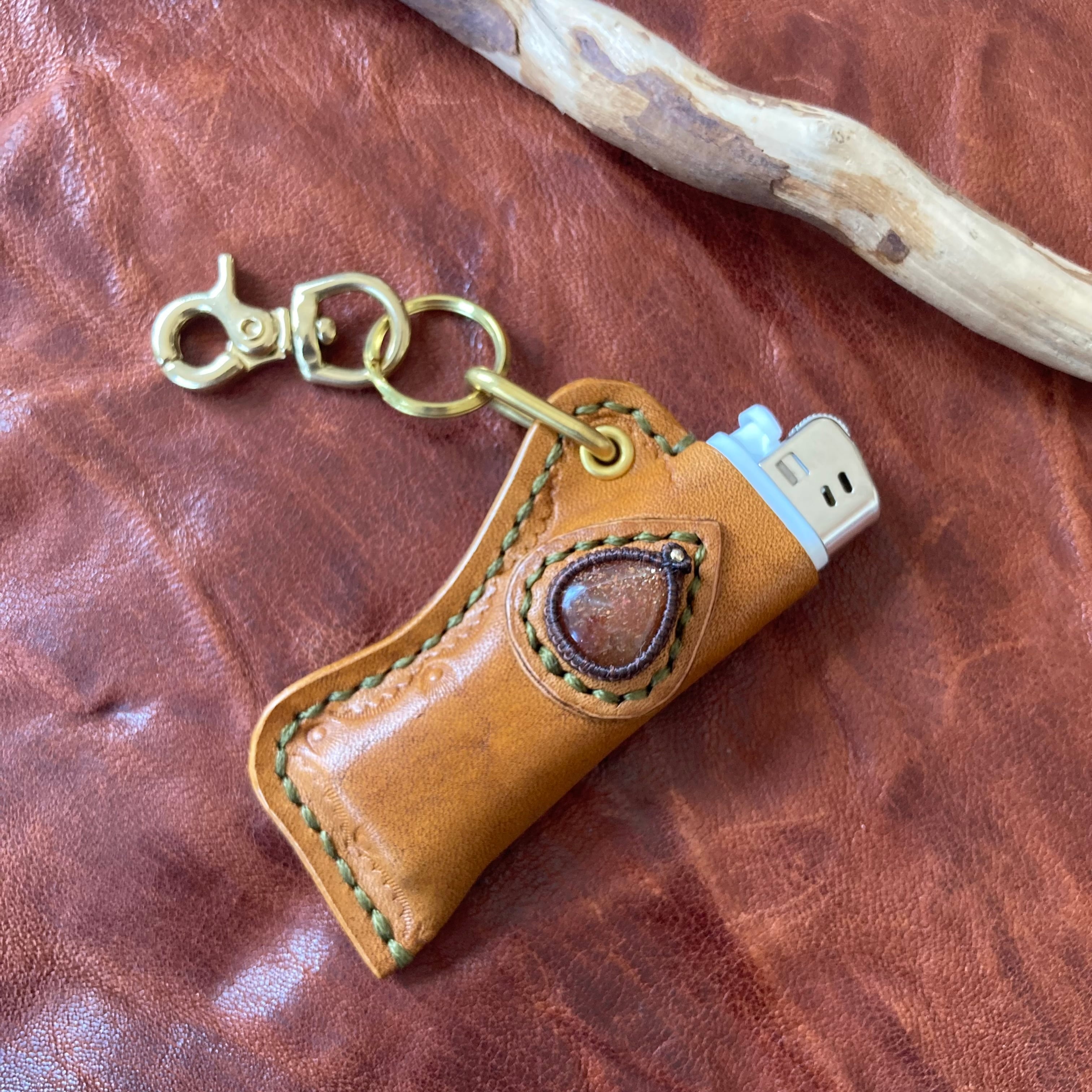 キラキラと太陽のように煌めくサンストーンと、アンティックレザーとステッチの色味の絶妙な組み合わせが最高です。
