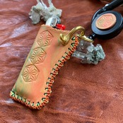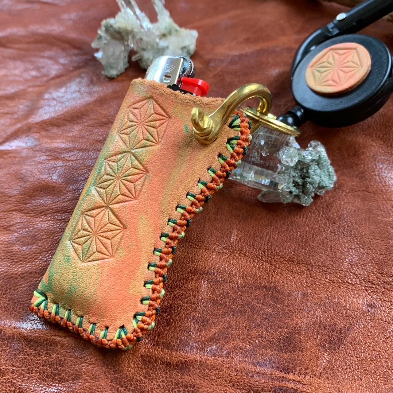 娘がマーブリング染めしたレザーを使ったオリジナルのライターカバーです。