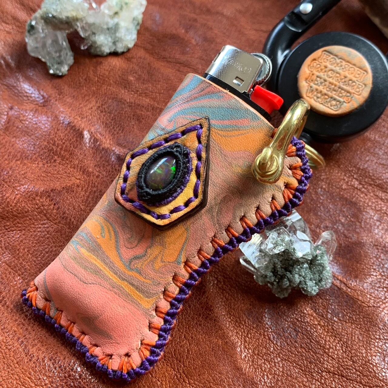 -Ethiopian Black Opal- マーブリングレザーBicライターカバー