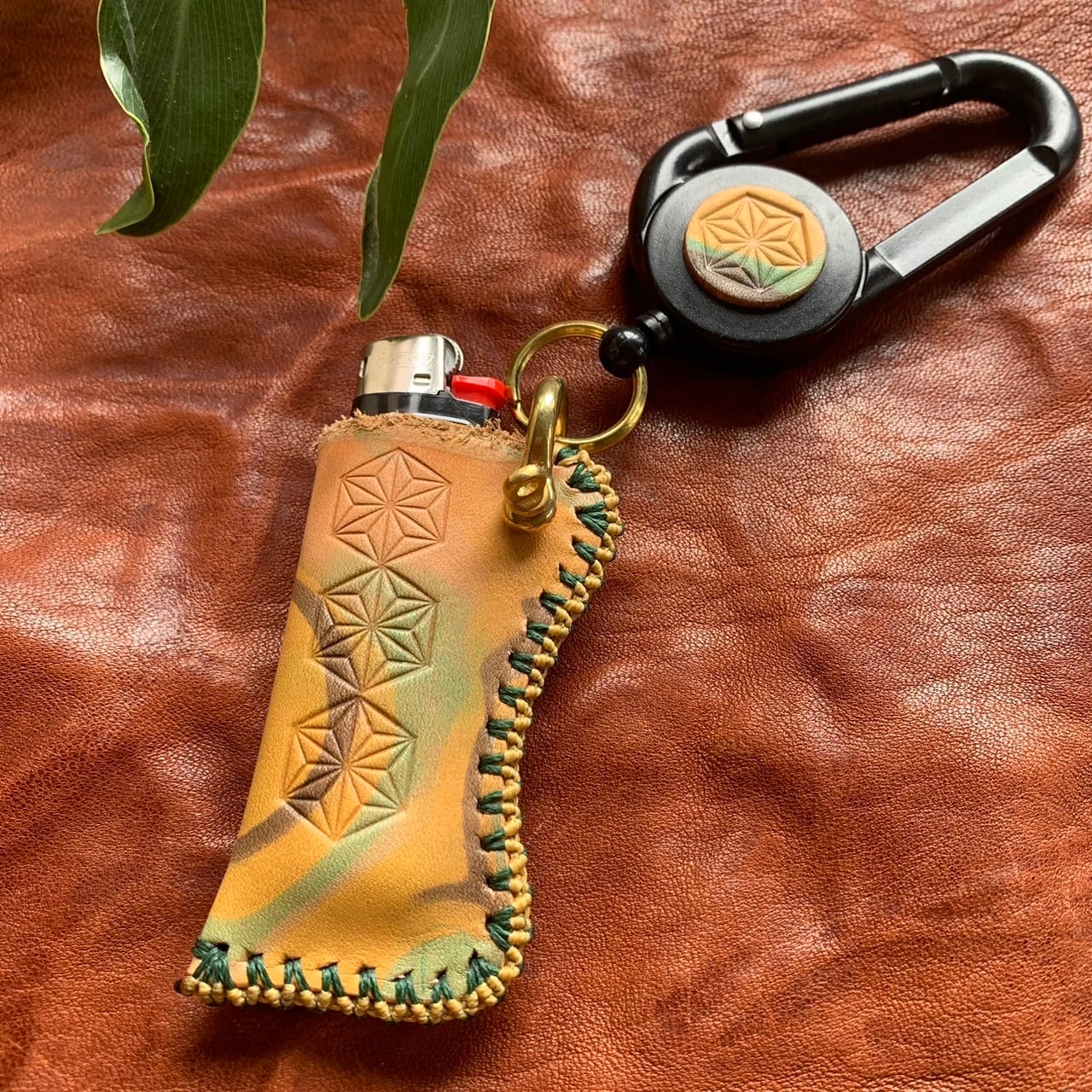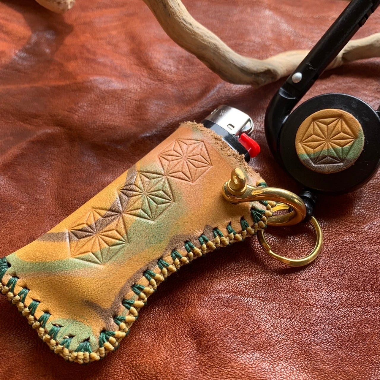 自身がマーブリング染めしたレザーを使ったオリジナルのライターカバーです。